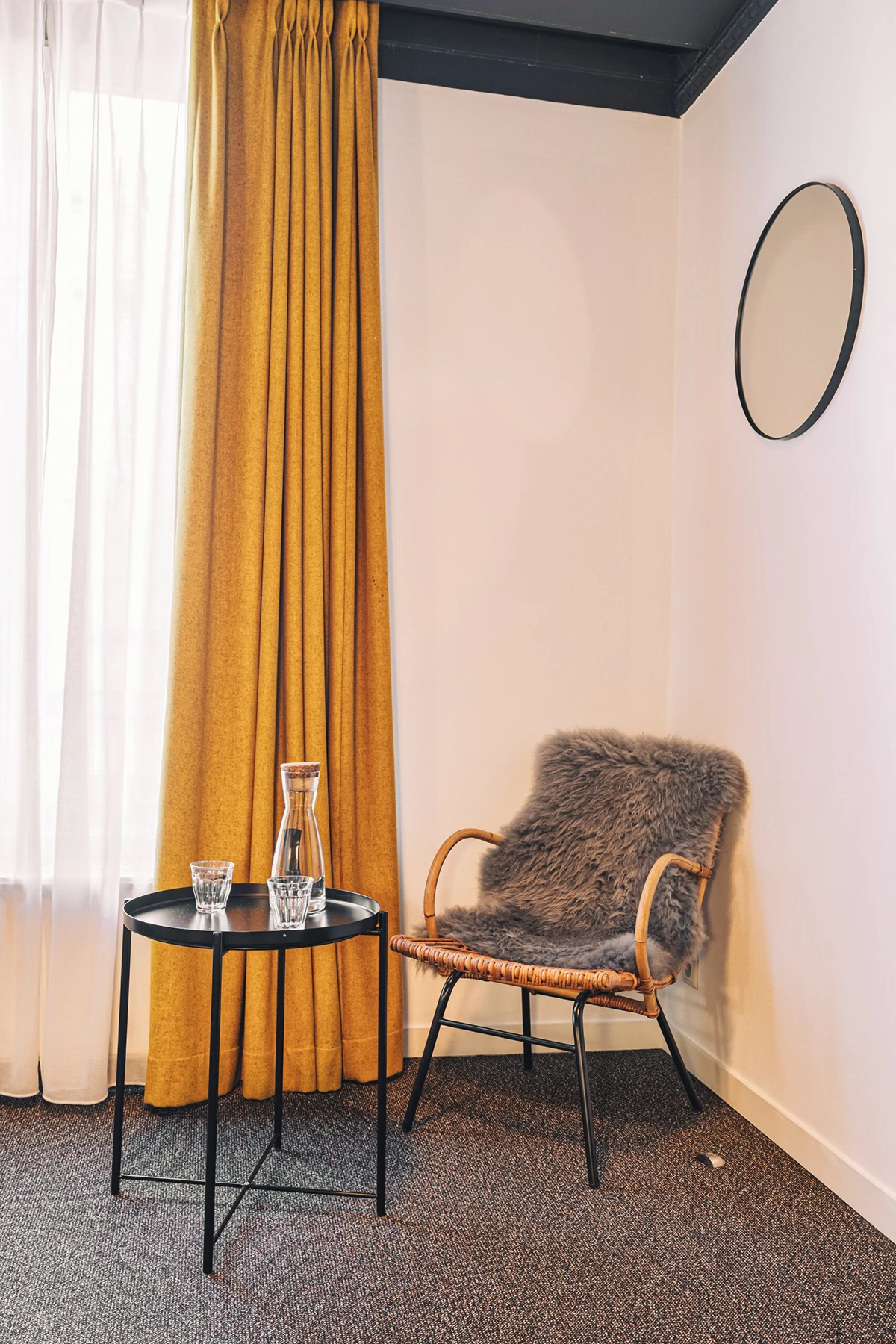Elke kamer is opgebouwd rond een fotografisch concept: een origineel werk van een Belgische kunstenaar legt een moment in Brussel vast en zorgt zo voor een persoonlijke en onverwachte sfeer. Ruwe materialen, zacht gedempt licht, industrieel geïnspireerd meubilair en een paar vintage accenten creëren een setting die tegelijk verfijnd en warm is, ver weg van het klassieke standaardhotel.